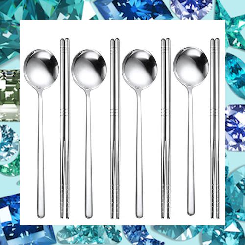 ?高品質18-8ステンレス製:スプーンお箸セットは高品質18-8ステンレス製で、金属が溶け出しているような変な味はしてません、安全、エコ、衛生、長持ちです。木、プラスチックのカトラリーセットと違い、カビが生えない、変形しない。食洗機対応、手で洗いもしやすく、水はけも良く、洗って保存が清潔です。