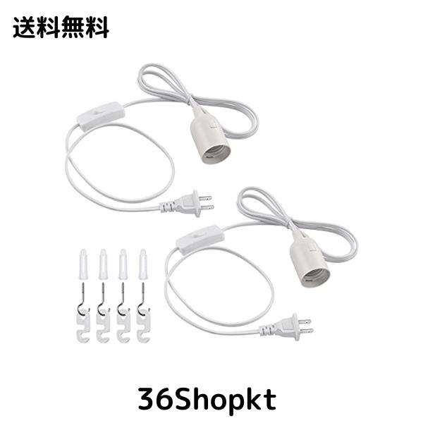 DiCUNO コード付きソケット E26 電球ソケット コンセント 吊り下げ スイッチ付き 2m ホワイト オシャレ 2個セット