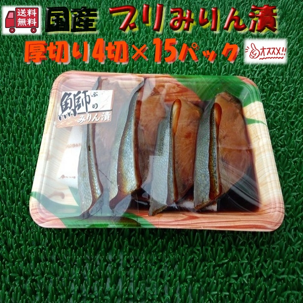 送料無料セット売り 仙台加工 国産 厚切 ブリ みりん漬 (4切×15個) のし対応 お歳暮 お中元 ギフト BBQ 魚介 お惣菜