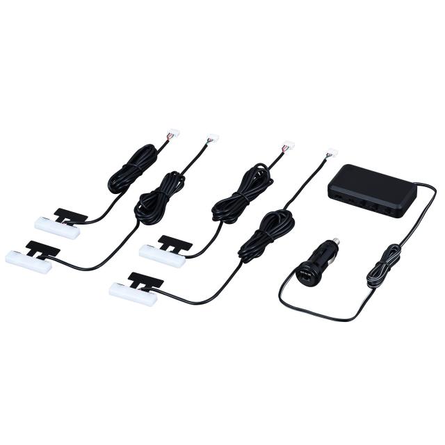 超高輝度LEDが5個(1ユニットあたり)搭載したライトユニットにより、暗いフロア(足元)を4箇所ライトアップでき、RGBダイヤルで、自分好みの照明色に調色できます。 サウンドセンサー内蔵で、音楽に合わせてLEDが点滅します。(点滅点灯)(点灯点滅)切り替えができます。 ロードノイズなどの音を感知させない低音感知カット機能付きです。 ライトユニットは取り付けステーを使用して、粘着テープによりシート下に取り付けたり、フロ