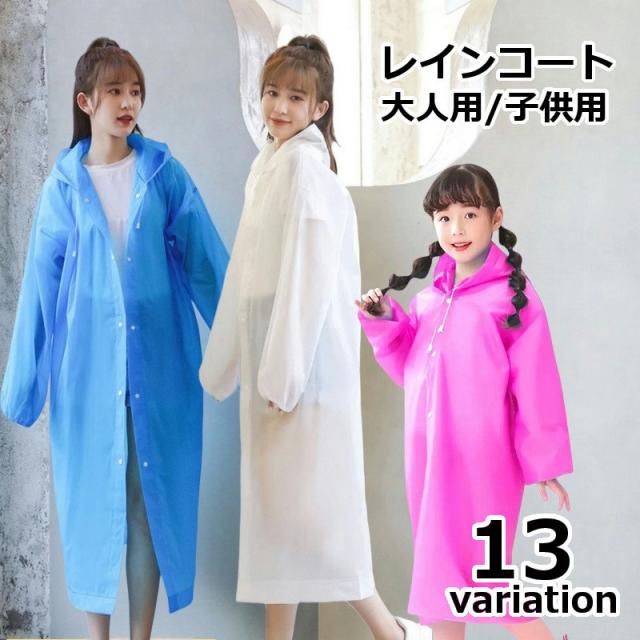 レインコート 雨具 カッパ 雨がっぱ 雨合羽 レインウェア 大人用 子供用 男女兼用 ロング丈 膝下丈 EVA素材 フード付き