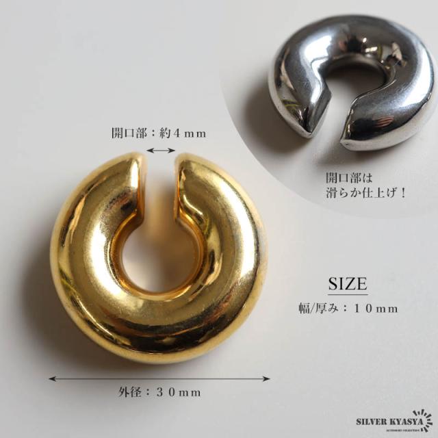ラージイヤーカフ ステンレス 18KGP ゴールド シルバー 太幅 特大 ワイドイヤカフ ピアス シンプルイヤーカフ レディース 女性 金属アレルギー対応 片耳