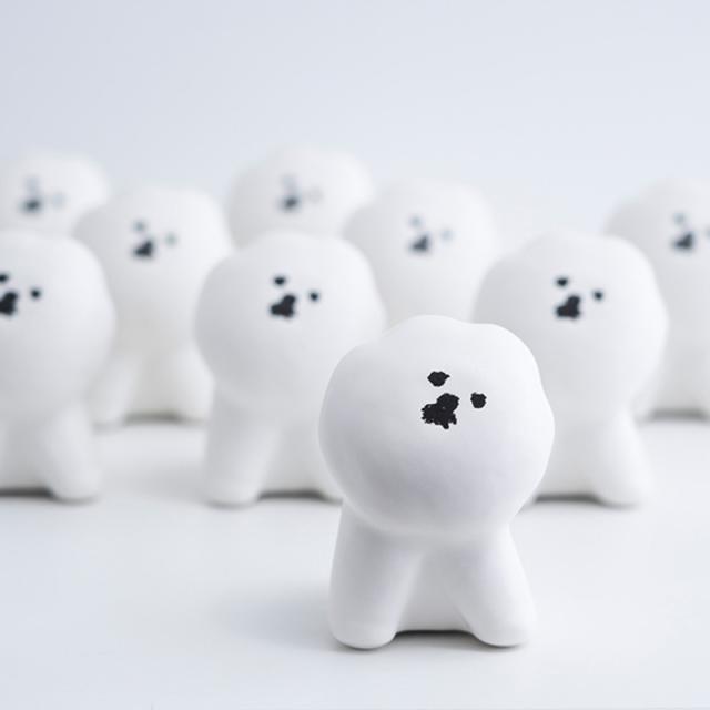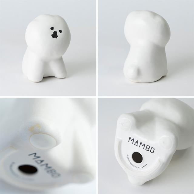 表面にはボコボコとした細かく不揃いの凹凸があり、MAMBOのふわふわ、モコモコの真っ白な毛並を再現しています。手に馴染む形とサイズ感で、つい触れたくなってしまうかわいさ。せわしない毎日の癒しになってくれること間違いなしです。