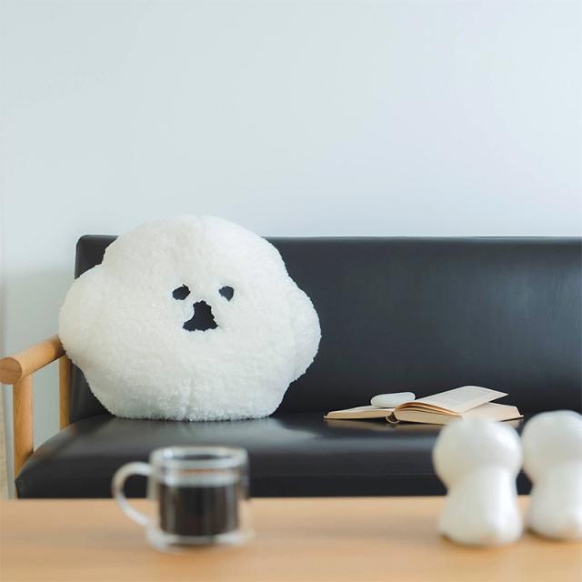 つぶらな目鼻がたまらなく愛らしい、MAMBOのKAOクッション。ふわふわ、もこもこで癒される触り心地。