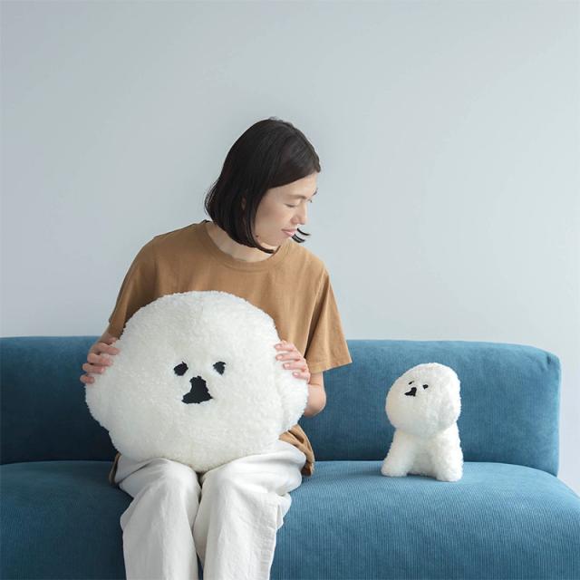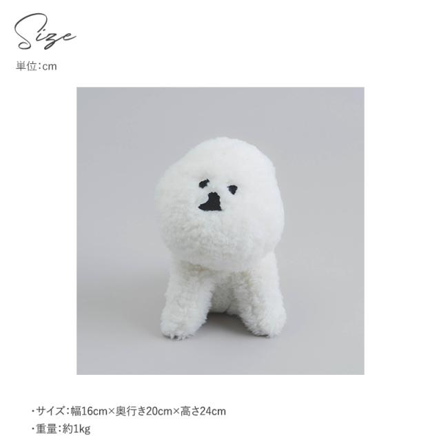 ふわふわ、モコモコの真っ白な毛並みはとても気持ちのよい肌触りで、抱き心地も抜群。360度どこから見てもほわほわでシルエットが何とも言えないかわいさです。思わず手に取りたくなる存在感で、せわしない毎日の癒しになってくれること間違いなしです。