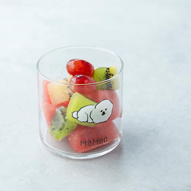 使うたびに癒される、愛らしいMAMBOのイラストのグラス。底が広く安定感のあるシンプルなデザインで多用途に活躍します。