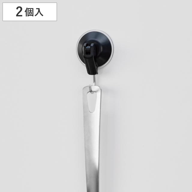 フック レバー式吸盤ツールフック 小 2個入 BK 耐荷重2kg ( 吸盤 強力 吸着 収納 壁掛け 引っ掛け 吊り下げ キッチンフック 小物掛け ガラス 冷蔵庫 洗濯機 キッチン 小物収納 収納フック 玄関 キッチンツール 掃除道具 壁面収納 )