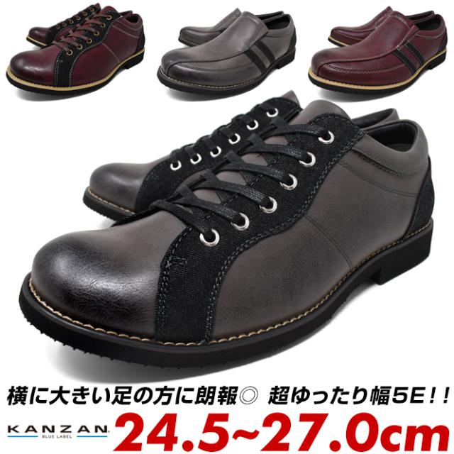 KANZAN カジュアルシューズ メンズ 靴 5E 幅広 紐 スリッポン 合成皮革 デニム ムラ染め 灰色 紺色 赤 グレー ワインレッド カンザン ブランド 10代 20代 30代 40代 50代 60代 70代 80代 立ち仕事 ポイント消化