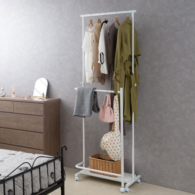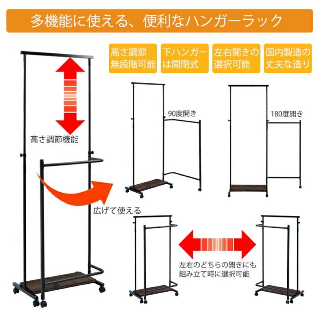 【TBAR】高さ自在回転式ハンガー多機能なキャスター付きハンガーラック ホワイト ブラックブラウン ハンガーラック ブラウン スリム コートハンガー 省スペース 寝室 玄関 子供 洋服 ヴィンテージ リビング シンプル キャスター付き 棚付き 衣類ハンガー コート掛け