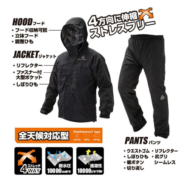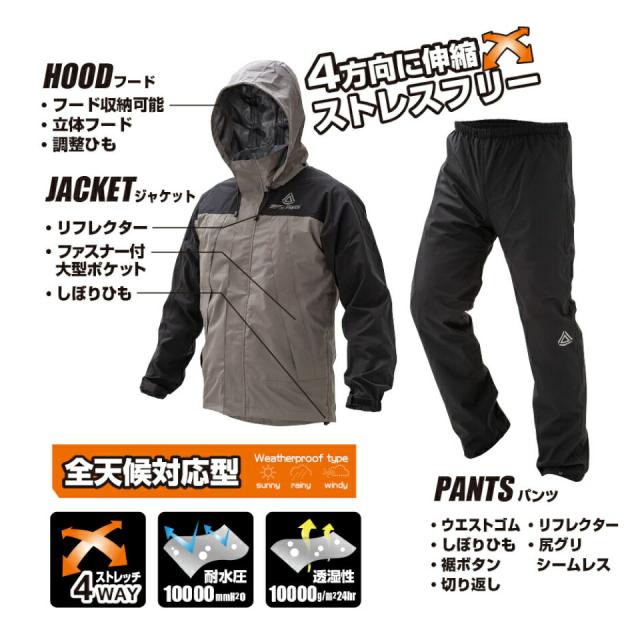 キーワード:プロテクトストレッチレインウェア 4WAY 透湿 全天候対応 全天候対応型 大雨 台風 雨 嵐 レインウェア レインパーカー 合羽 カッパ 上下セット 2ピース 雨合羽 アウター アウトドア ウインドブレーカー 屋外作業 通勤通学 フィッシング ゴルフ キャンプ 土木業 軽作業 運送業 工作作業 農耕作業 学生 サラリーマン 通勤通学 自転車通学 バイク通勤 メンズ レディース 紳士用 婦人用 男女兼用 レインウェア レインパーカー ストレッチ 伸縮 かっぱ 合羽 カッパ 雨合羽 紳士用 婦人用 防風 防寒 撥水 シームテープ加工済み 防水 全天候対応 耐水 透湿 機能ウェア アウトドアウェア アウター 立体フード付き アウトドア 軽量 安全 反射ロゴマーク リフレクター付き ストレッチ 伸縮 ウインドブレーカー 屋外作業 通勤通学 フィッシング ゴルフ キャンプ 土木業 軽作業 運送業 工作作業 農耕作業 学生 サラリーマン 通勤通学 自転車通学 バイク通勤 通販サンゴ