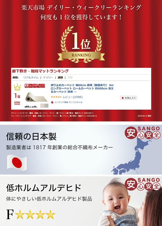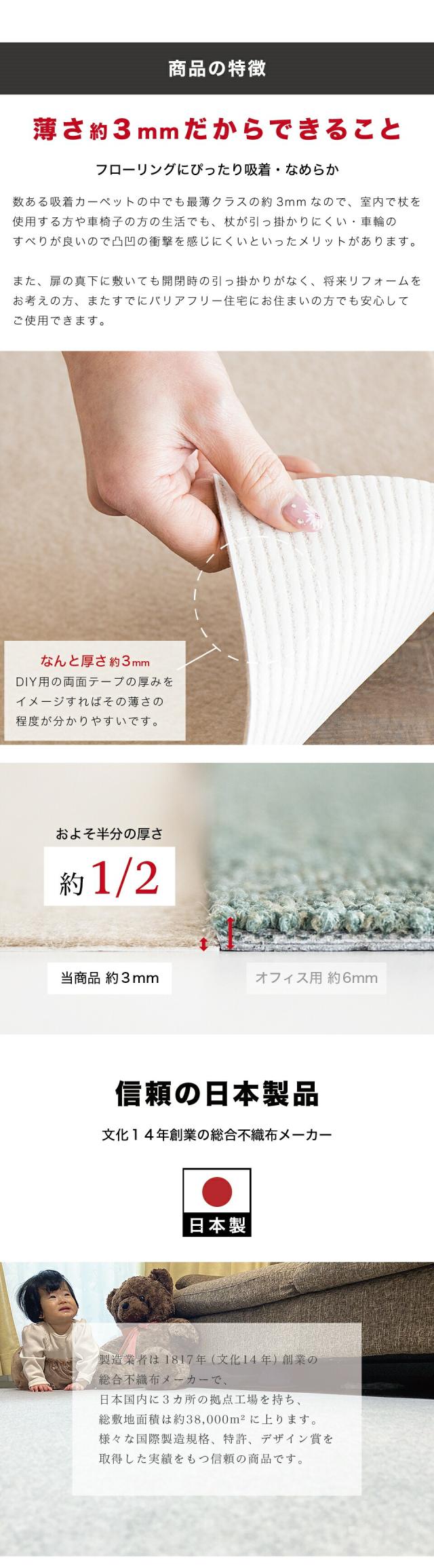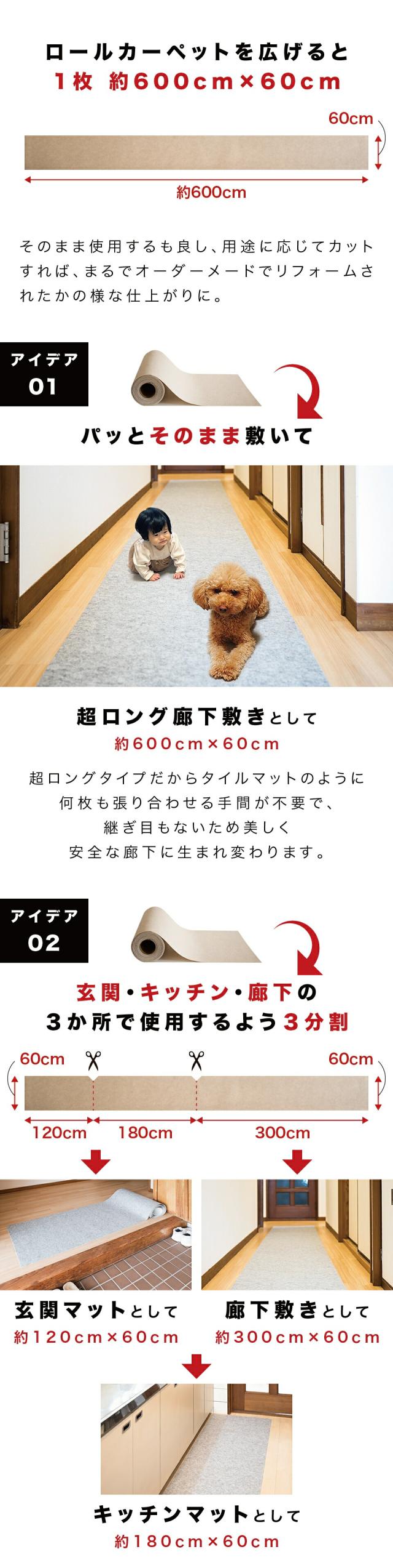 ■商品説明セット内容:シンプルでどこでも使えるすべり止めロールカーペットです。 手軽にお好みのサイズにカットして使用できます。 裏面は特殊吸着加工で床にピタッと吸着。簡単に外せて跡も残りません。目に見えない無数の気孔があり上から力が加わると空気が抜けて真空状態になります。それが無数の吸盤となり、くっつく仕組みです。吸盤の様にピッタリ貼り付き、掃除機で吸い込んでも、犬が走り回ってもめくれず、つまづきにくく安全です。床にキズがつきにくく、掃除もラクラク。汚れたら外して洗濯機で洗えます。安心の日本製です。ウォッシャブル 防音対策 キズ防止 滑り防止 ※床暖房には対応しておりませんのでご了承ください。 北欧好きやDIY好きにもオススメ!一人暮らし・ファミリー・子供部屋からオフィスまで新生活におすすめの高品質でおしゃれな家具・インテリア・生活雑貨の通販 ■商品仕様表面 / ポリエステル裏面 / アクリル樹脂■商品サイズ60×600cm■色 グレー ベージュ 日本製 日本産 国産 日本 ルマット ベージュ 洗える 丸洗い ロールマット ロールカーペット 吸着 タイルカーペット タイルカーペット タイルカーペット 洗える フリーカット 貼り替え リフォーム ラグ 滑り止め 絨毯 洗える 丸洗い オールシーズン キッチンマット ペット カット 置くだけ 防音 吸着カーペット 吸着マット 使い捨て トイレマット 廊下敷き 無地 剥がせる 貼り替え 夏用 冬用 業務用 洗える カーペット 防音 セット 吸着カーペット ペット用カーペット洗える吸着マット 大判 おくだけで吸着マット おくだけロールマット 送料無料 養生 引越し 防汚 再利用 冷え対策 リニューアル マルチロールカーペット マルチロングカーペット マルチカーペット ふわふわ フワフワ ループなし カットパイル 団地 可愛い 目立たない シーズンレス 年中 立ち仕事 ひざ痛 膝痛 腰痛 洗濯可能 洗えるラグ オールシーズン カーペット 夏冬兼用 乾きやすい 爪 ゴルフ パター パターゴルフ 練習 はだし 裸足 廊下 ろうか ろう下 パット ロングパット ダンス イヌ いぬ 猫 ネコ ねこ すべらない 滑らない すべりどめ すべり止め 滑りどめ つめ ツメ 大判