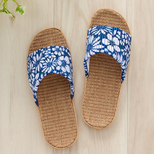 甲に爽やかな花柄生地をあしらったジュートスリッパ