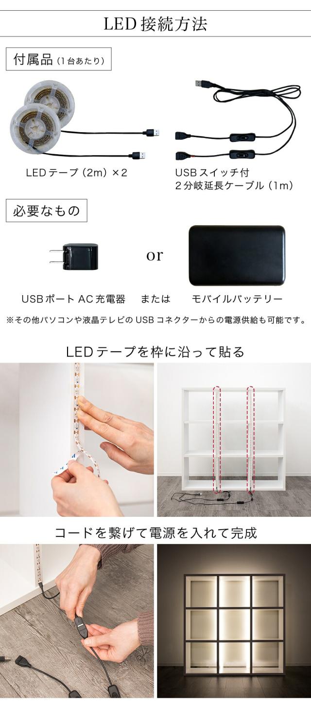| 正方形 オープンラック LEDライト付き ライトアップで輝くコレクション 連結して設置できる、おしゃれな本棚2台セットです。LP[レコード]を収納できる棚がない!気持ちよくキングファイルを出し入れしたい!そんな要望を叶える為に、改良を重ねた絶妙サイズのオープンラックが出来上がりました! 内側約32×32cmの”正方形”充実空間。1マス約幅32×高さ32×奥行26cmの大きさで 充実の収納力! DVD・コミック・文庫本は勿論、レコードやオブジェ 食器などをディスプレイして魅せる収納を楽しめます。 A4サイズのキングファイルが 収納できます。オフィスや書斎用 本棚として書類の保管に最適なシェルフです。 隙間があるので出し入れも楽にできます。 ファッションや趣味の雑誌も余裕で収納!お気に入りの本・雑貨をディスプレイできます。 バッグや帽子などがショップのようにオシャレに片付く! 普段使いのカバンがさっと出し入れ出来ます。 少年コミックや文庫は前後2列に置けます。1マスに約40冊収納可能です。 |