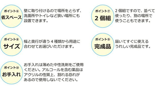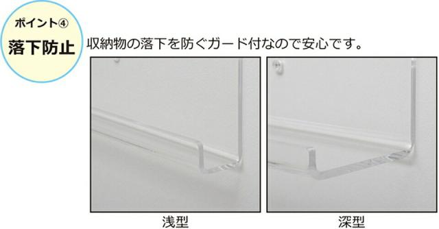 アクリリック ウォールシェルフ W38深型2個組 棚 ピン止め 賃貸 工具不要 壁掛け 飾り棚 ウォールラック 透明