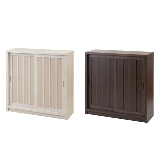 【Tatis】 幅90.5 奥行30 高さ86.5 天然木桐材の格子板引戸キャビネット カウンター下収納 キッチン収納 ホワイト ブラウン 日本製 国産 完成品 木製 桐