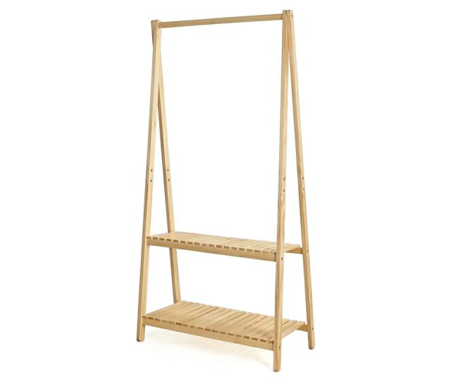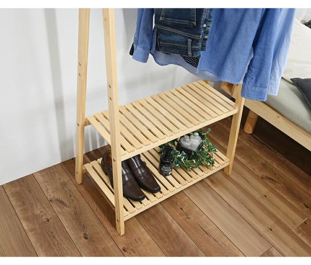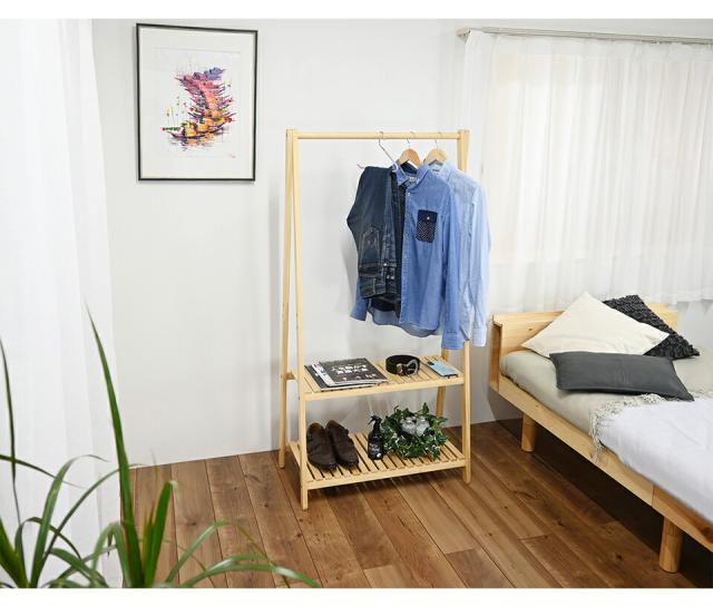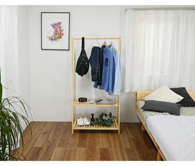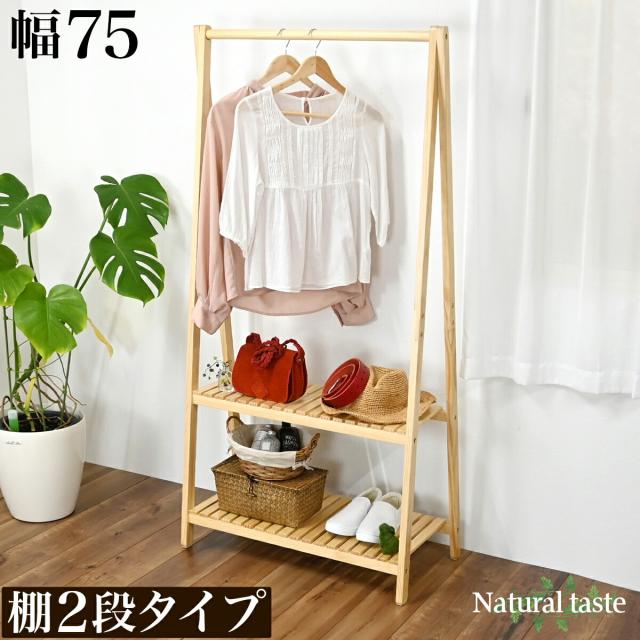 ハンガーラック 天然木 ハンガー 幅75cm 棚付き2段 木 ナチュラル 木製 シンプル おしゃれ カントリー風 お洒落 洋服 整理 コートハンガー 木製ハンガーラック 衣類収納 オシャレ 子供部屋 シンプル コートハンガー 玄関収納