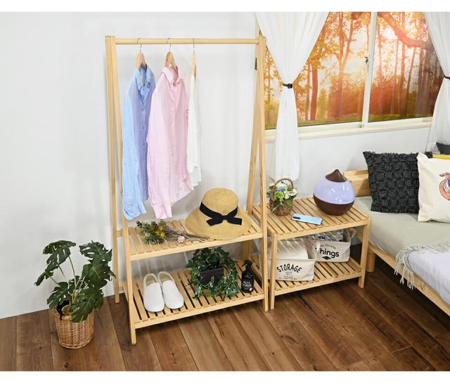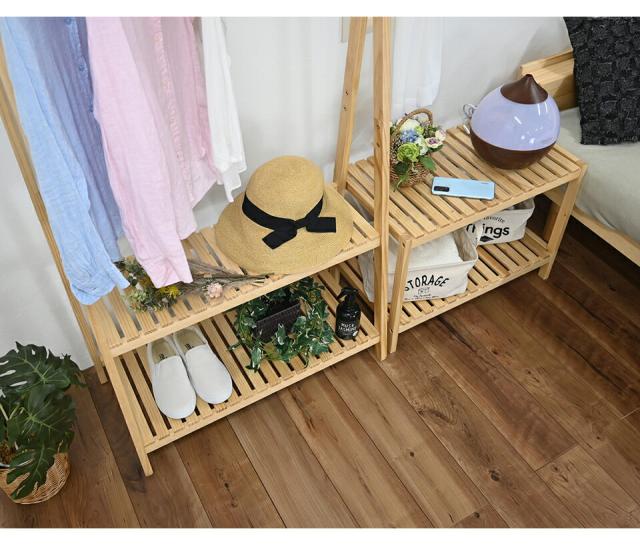 | ●温もりのある天然木を使用しています。●シンプルなデザインでお部屋の雰囲気を損ないません。●棚が2段あるため、洋服以外にも小物などの収納に便利です。●天然木を使っていますので、商品により色などの差異が生じる場合があります。●脚裏クッションシート付き。 |
