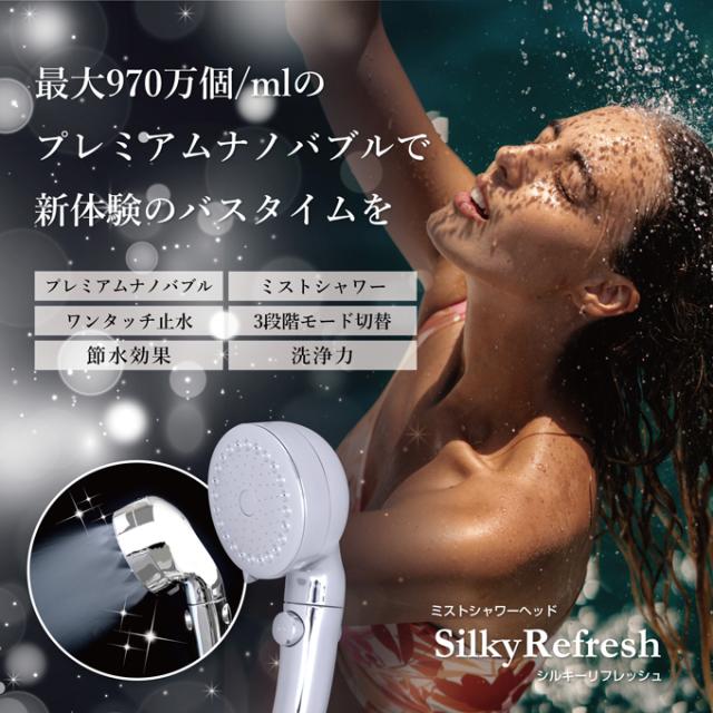 送料無料 【LDKベストバイ1位】シャワーヘッド シルキーリフレッシュ プレミアム 4種類アダプター付 ナノバブル 970万個/ml 水流 3タイプ切り替え 手元止水機能付き 最大60% 節水 取付簡単