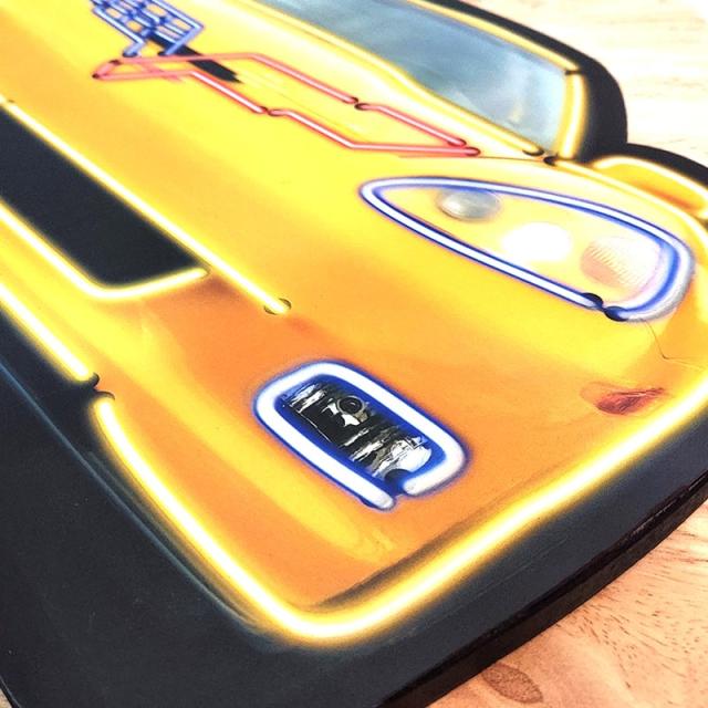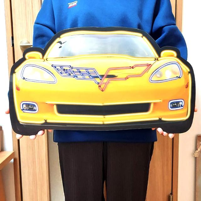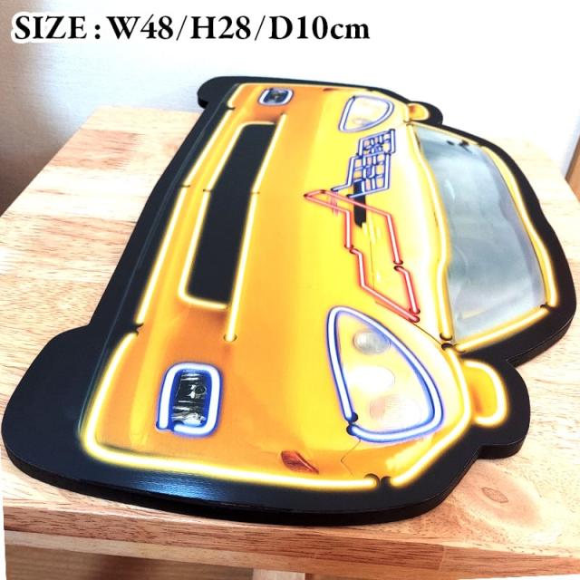 木製看板 3Dウッドサイン コルベット イエロー シボレー 壁飾り ネオン風 ガレージ スポーツカー かっこいい アメリカン雑貨