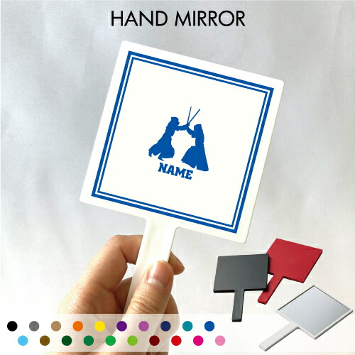 「剣道」名入れ手鏡 コンパクトミラー メイク道具 携帯ミラー ハンドミラー スクエア シンプル 可愛い コスメ 美容 ミラー 鏡 角型