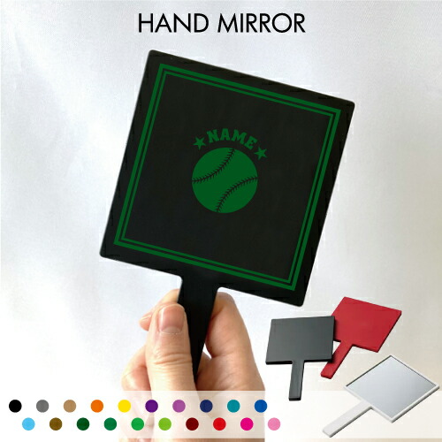 「野球ボール」名入れ手鏡 コンパクトミラー メイク道具 携帯ミラー ハンドミラー スクエア シンプル 可愛い コスメ 美容 ミラー 鏡 角型野球 甲子園 甲子園