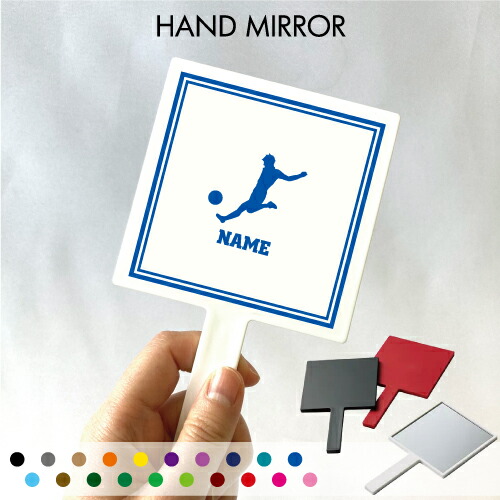 「サッカープレイヤー」名入れ手鏡 コンパクトミラー メイク道具 携帯ミラー ハンドミラー スクエア シンプル 可愛い コスメ 美容 ミラー 鏡 角型サッカー 蹴球