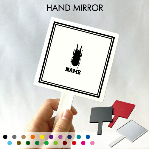 「クワガタ」名入れ手鏡 コンパクトミラー メイク道具 携帯ミラー ハンドミラー スクエア シンプル 可愛い コスメ 美容 ミラー 鏡 角型 昆虫