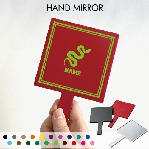 「ヘビ」名入れ手鏡 コンパクトミラー メイク道具 携帯ミラー ハンドミラー スクエア シンプル 可愛い コスメ 美容 ミラー 鏡 角型アイテム 爬虫類