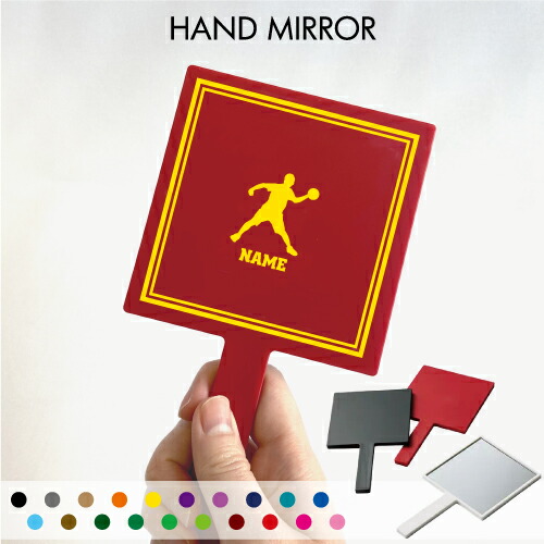 「ドッジボール」名入れ手鏡 コンパクトミラー メイク道具 携帯ミラー ハンドミラー スクエア シンプル 可愛い コスメ 美容 ミラー 鏡 角型