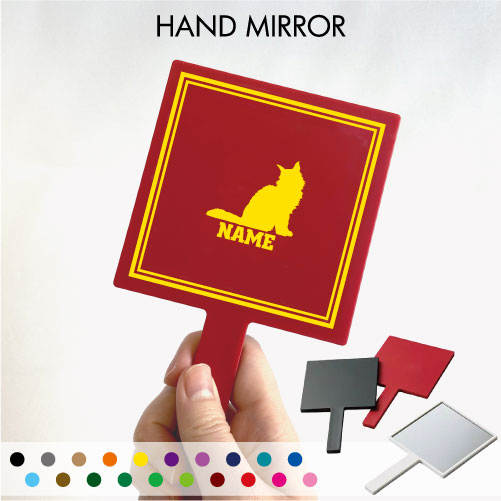 メインクーン 名入れ手鏡 コンパクトミラー メイク道具 携帯ミラー ハンドミラー スクエア シンプル 可愛い コスメ 美容 ミラー 鏡 猫 ネコ ねこ キャット ペット