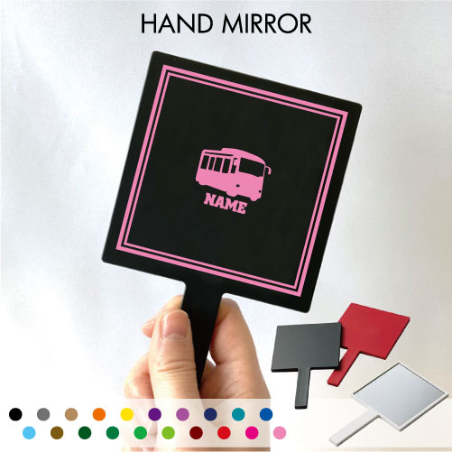 バス 名入れ手鏡 コンパクトミラー メイク道具 携帯ミラー ハンドミラー スクエア シンプル 可愛い コスメ 美容 ミラー 鏡 乗り物 車 はたらく 趣味