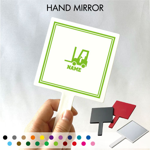 フォークリフト2 名入れ手鏡 コンパクトミラー メイク道具 携帯ミラー ハンドミラー スクエア シンプル 可愛い コスメ 美容 ミラー 鏡 乗り物 車 はたらく 趣味