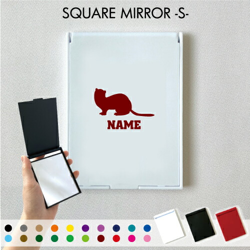 「フェレット」名入れコンパクトミラー 折りたたみ 小さい 卓上ミラー スタンドミラー 折立鏡 手のひらサイズ コンパクトミラー 可愛い ミニサイズ イタチ 卒業記念品 卒業祝い 卒業ギフト