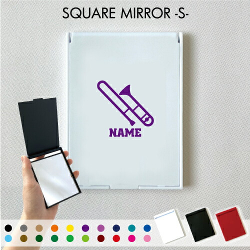 「トロンボーン」名入れコンパクトミラー 折りたたみ 小さい 卓上ミラー スタンドミラー 折立鏡 手のひらサイズ コンパクトミラー 可愛い ミニサイズ 楽器 吹奏 バンド 楽団 オーケストラ クラシック 卒業記念品 卒業祝い 卒業ギフト