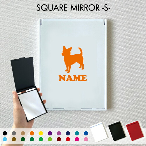 「チワワ2」名入れコンパクトミラー 犬種別シルエット 折りたたみ 小さい 卓上ミラー スタンドミラー 折立鏡 手のひらサイズ コンパクトミラー 可愛い ミニサイズ 卒業記念品 卒業祝い 卒業ギフト