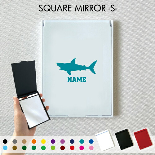 「サメ」名入れコンパクトミラー 折りたたみ 小さい 卓上ミラー スタンドミラー 折立鏡 手のひらサイズ コンパクトミラー 可愛い ミニサイズアイテム 鮫 フカヒレ ジョーズ shark 卒業記念品 卒業祝い 卒業ギフト