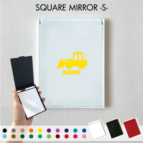 ブルドーザー2 名入れコンパクトミラー 折りたたみ 小さい 卓上ミラー スタンドミラー 折立鏡 手のひらサイズ コンパクトミラー 可愛い ミニサイズ 乗り物 車 はたらく 趣味 卒業記念品 卒業祝い 卒業ギフト