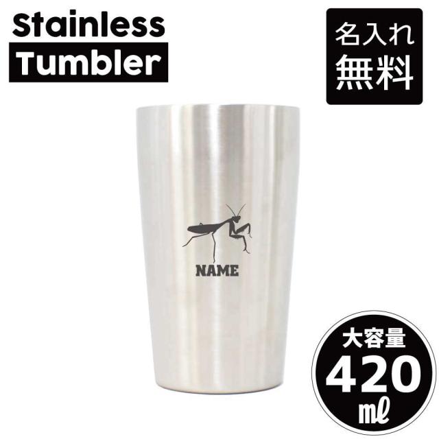 カマキリ/名入れステンレスタンブラー 卒業記念品 卒団記念品 420ml 真空断熱 タンブラー 名入れタンブラー 卒部祝い 二重構造 サーモタンブラー 保温 保冷 昆虫