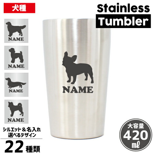 「犬種シルエット」名入れステンレスタンブラー 卒業記念品 卒団記念品 真空断熱 名入れタンブラー トイプードル ダックス シュナウザー チワワ ゴールデンレトリバー ポメラニアン ヨークシャテリア コーギー ビーグル パグ フレブル パピヨン シーズー 柴犬