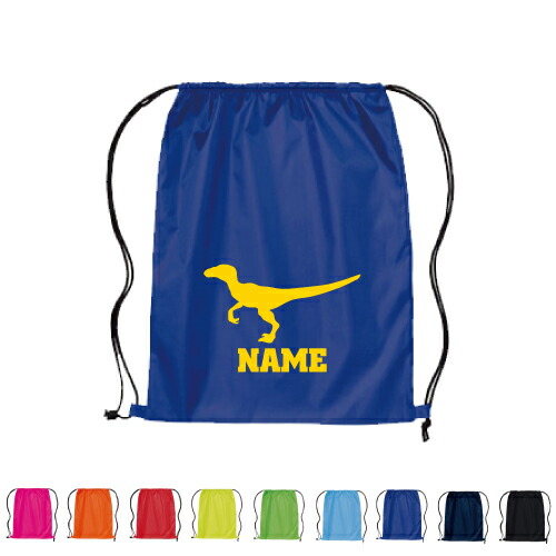 ヴェロキラプトル 名入れランドリーバッグ リュックサック ポリエステルバッグ 部活 スポーツ プール 着替え入れ アウトドア 遠征 合宿 旅行 キャンプ 卒団記念品 恐竜 化石 肉食 草食 雑食 海 陸