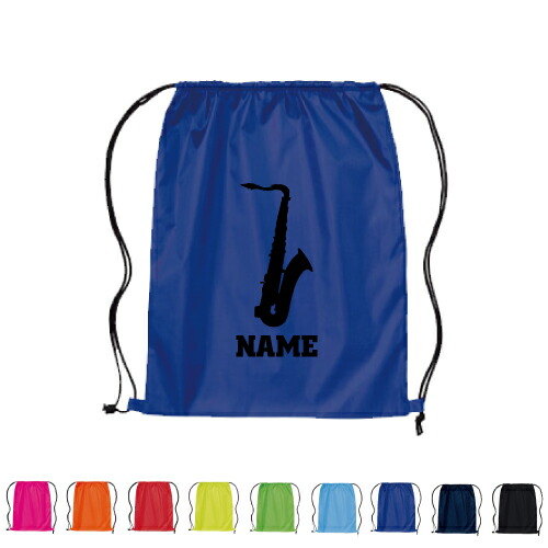 「サックス」名入れランドリーバッグ ナップサック 卒業記念品 卒団記念品 リュックサック ポリエステルバッグ 吹奏楽 楽器 バンド 楽団 クラシック オーケストラ 着替え入れ袋 ウェア袋 プレゼント 卒業記念品 卒団祝い 卒部祝い 卒業祝い