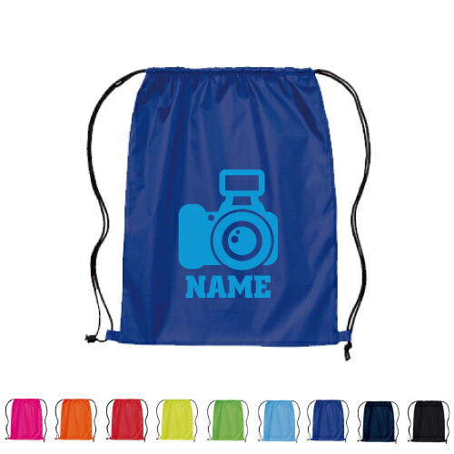 「写真部1」名入れランドリーバッグ ナップサック 卒業記念品 卒団記念品 リュックサック ポリエステルバッグ 部活 一眼レフ カメラ 着替え入れ袋 ウェア袋 メモリアルグッズ 部活の記念品