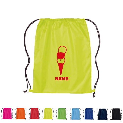 アイスクリーム 名入れランドリーバッグ ナップサック 卒業記念品 卒団記念品 リュックサック ポリエステルバッグ 着替え入れ袋 ウェア袋 メモリアルグッズ 部活の記念品