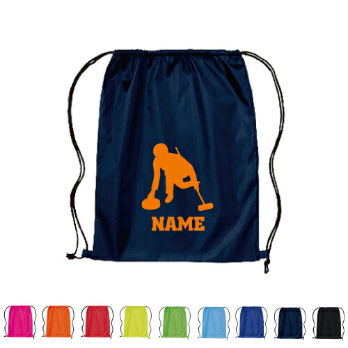 「カーリング2」名入れランドリーバッグ ナップサック 卒業記念品 卒団記念品 リュックサック ポリエステルバッグ 部活 スポーツ 卒部記念 着替え入れ袋 ウェア袋 メモリアルグッズ 部活の記念品