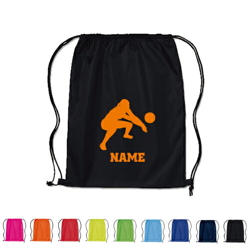 「レシーブ」名入れランドリーバッグ ナップサック 卒業記念品 卒団記念品 リュックサック ポリエステルバッグ 部活 スポーツ プール 夏合宿 遠征 アウトドア 着替え入れ キャンプ バレーボール グッズ