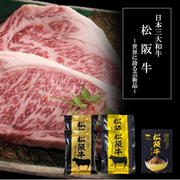 日本を代表する和牛【松阪牛】。生産区域・対象牛・飼育期間・枝肉格付など、様々な厳しい基準を満たした松阪牛の和牛香は甘くコクがある上品な香りが特徴です。そんな松阪牛をラーメン・カレー・ふりかけにしました。ご家庭で気軽に松阪牛をお楽しみいただけるセットとなっております。