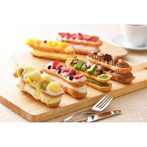濃厚なアイスクリームを専門店ならではのしっとりとしたシュー皮で包み、フルーツやカラフルなクリームで飾りつけました。まるでデコレーションケーキのような豪華なシューアイスです。