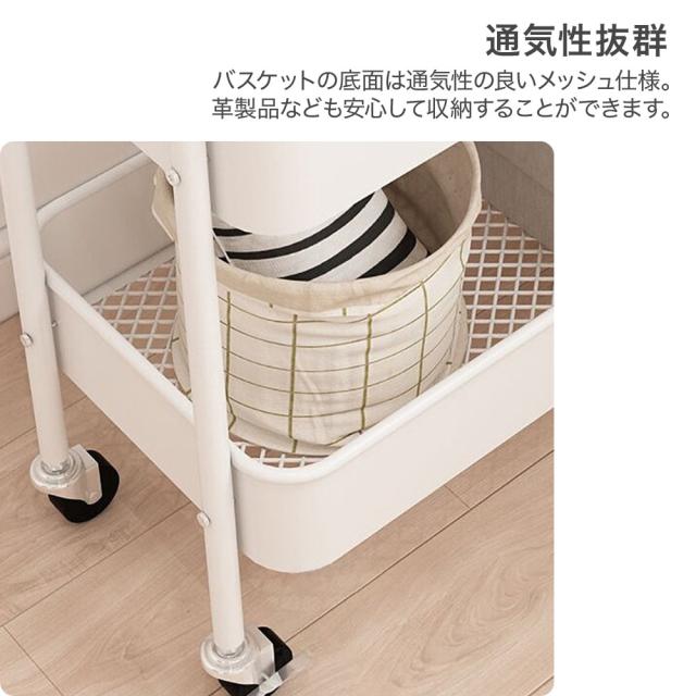 収納バスケットが2段あるのでカバンや小物、