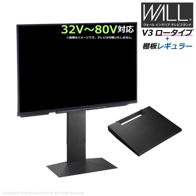 壁寄せ テレビ台 WALL テレビスタンド V3 ロータイプ + 棚板レギュラーサイズ セット 32V〜80V対応 WSTVH5-SB サテンブラック
