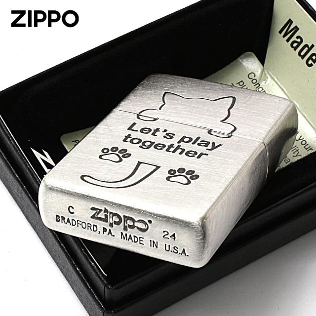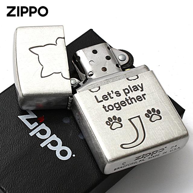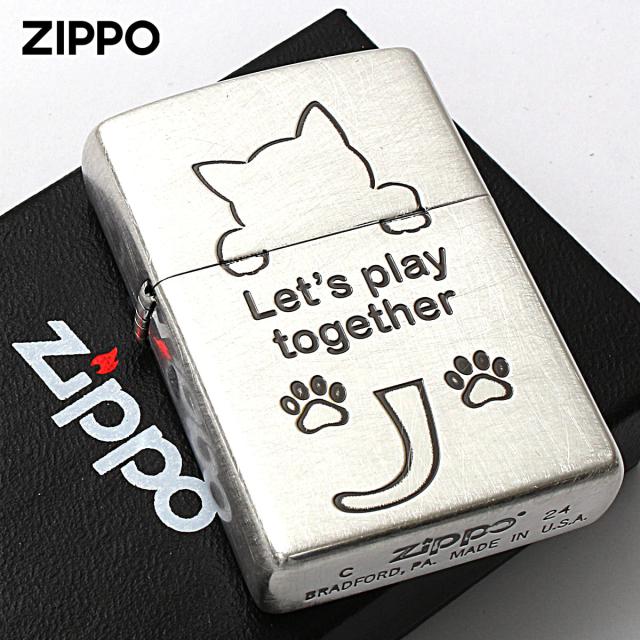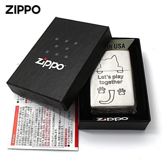 Zippo ジッポライター ネコ 猫 Cat 一緒に遊ぼう ユーズド仕上げ 銀メッキ CAT Series Let's play together 2UDSI-CAT メール便専用商品